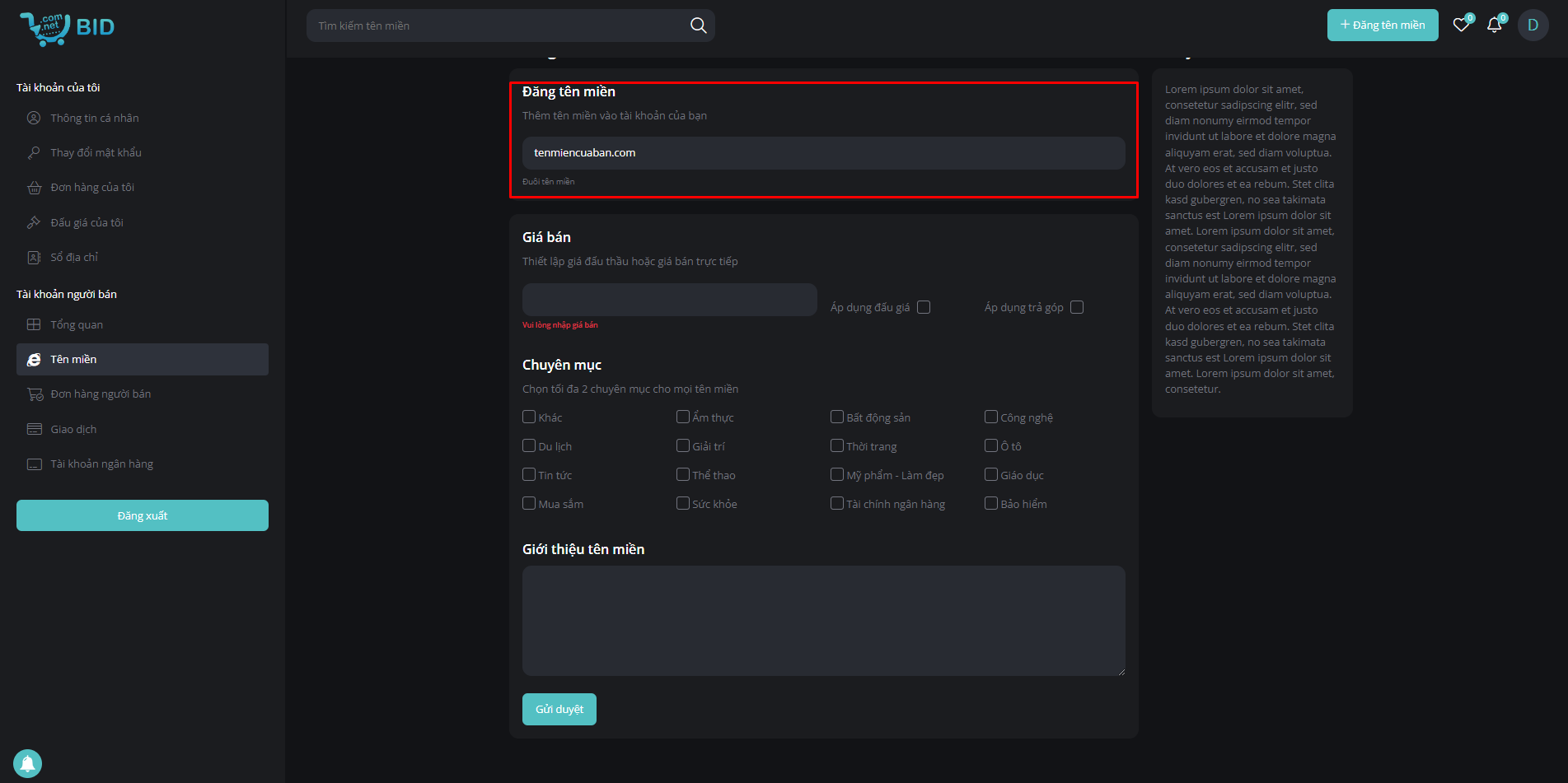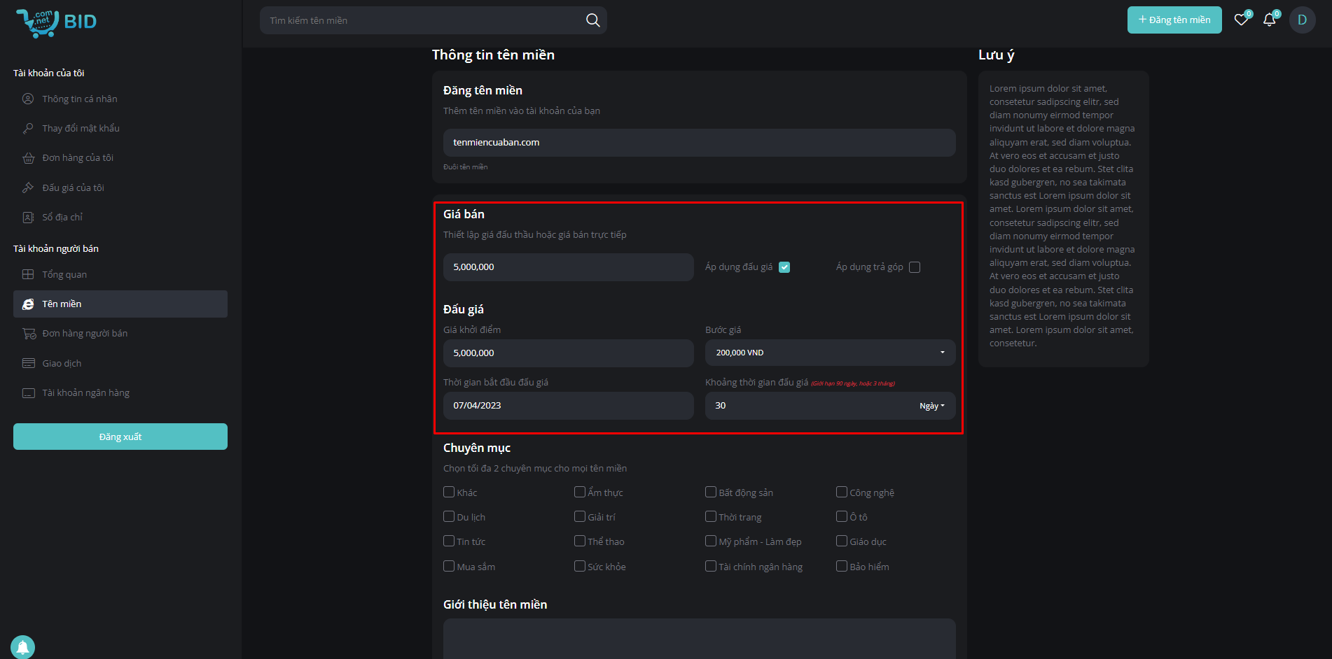 Hướng dẫn rao bán và đấu giá tên miền trên sàn giao dịch domain