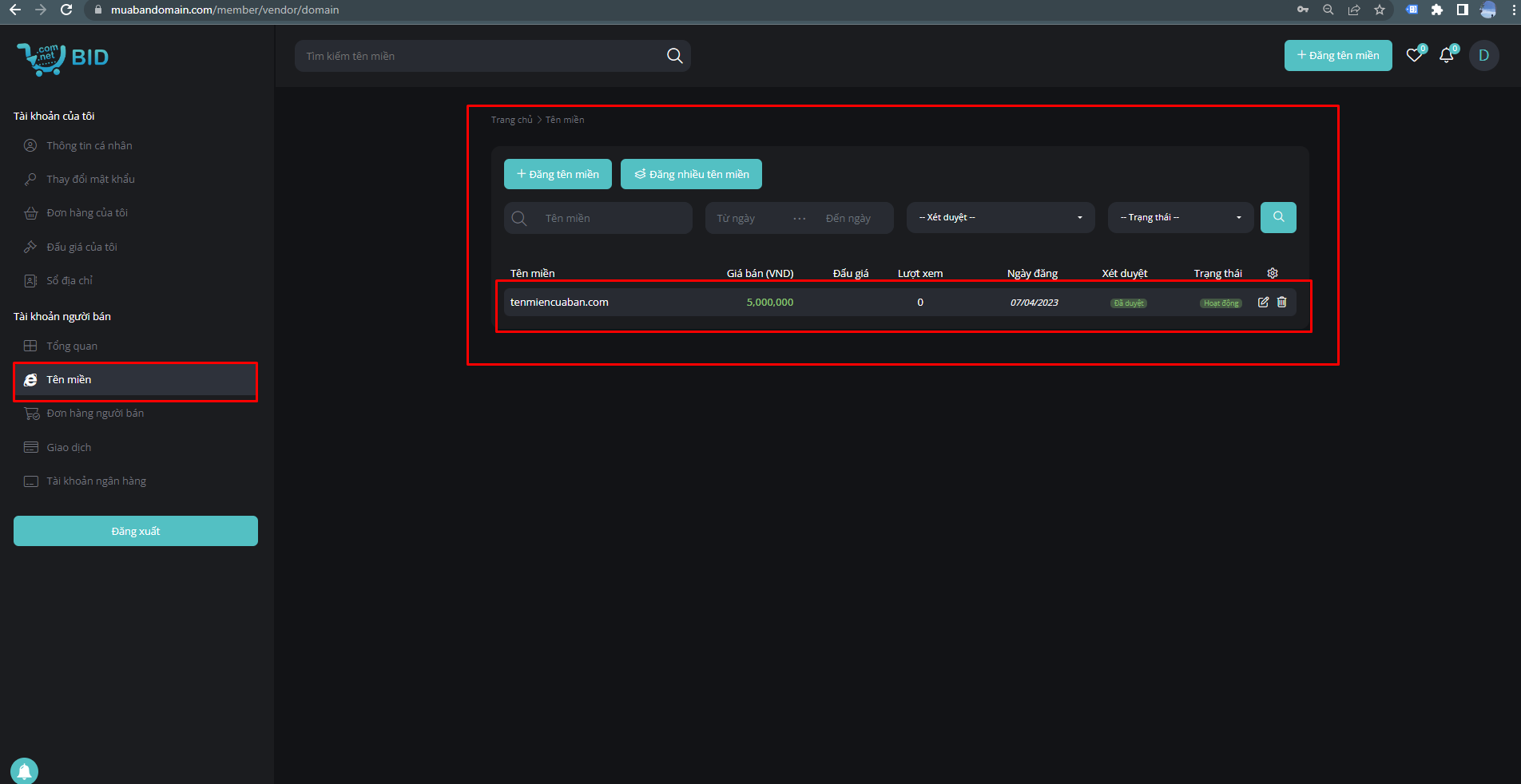 Sàn muabandomain của Nhân Hòa là sàn giao dịch tên miền uy tín hàng đầu Việt Nam hiện nay với mức hoa hồng tốt nhất trên thị trường, tối ưu lợi nhuận cho người bán. Với dữ liệu tên miền lớn, giúp người mua theo dõi được tên miền mà mình ưng ý khi nào hết hạn để có thể tiến hành mua bán nhanh nhất. Ngoài ra, bộ lọc tìm kiếm tên miền được tối ưu hóa với rất nhiều tính năng như: đuôi tên miền, tên miền hot, khoảng giá… giúp người mua tìm được tên miền cần thiết nhanh hơn. Bài viết sau đây sẽ hướng dẫn quý khách rao bán và đấu giá tên miền của mình trên Sàn muabandomain của Nhân Hòa